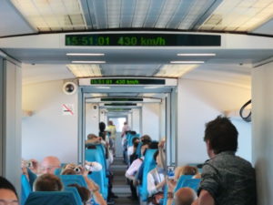 By that time I figured out that everyone was just so friendly and willing to help that when they asked me to wait 5 minutes, I let go the western efficiency. It’s just that they are not used to a guy with a bicycle and 2 duffels to want to board the maglev train. They just need a little time to adjust, just like me. So when another train official asked me to follow him, and we went out the gates again, I was wondering where I was going but knew it would be OK. Fortunately, they figured out that using an elevator is much easier that an escalator, especially when you’re by bike. So just a few minutes later, I was heading 430 kilometer/hour towards Pudong Maglev train station.